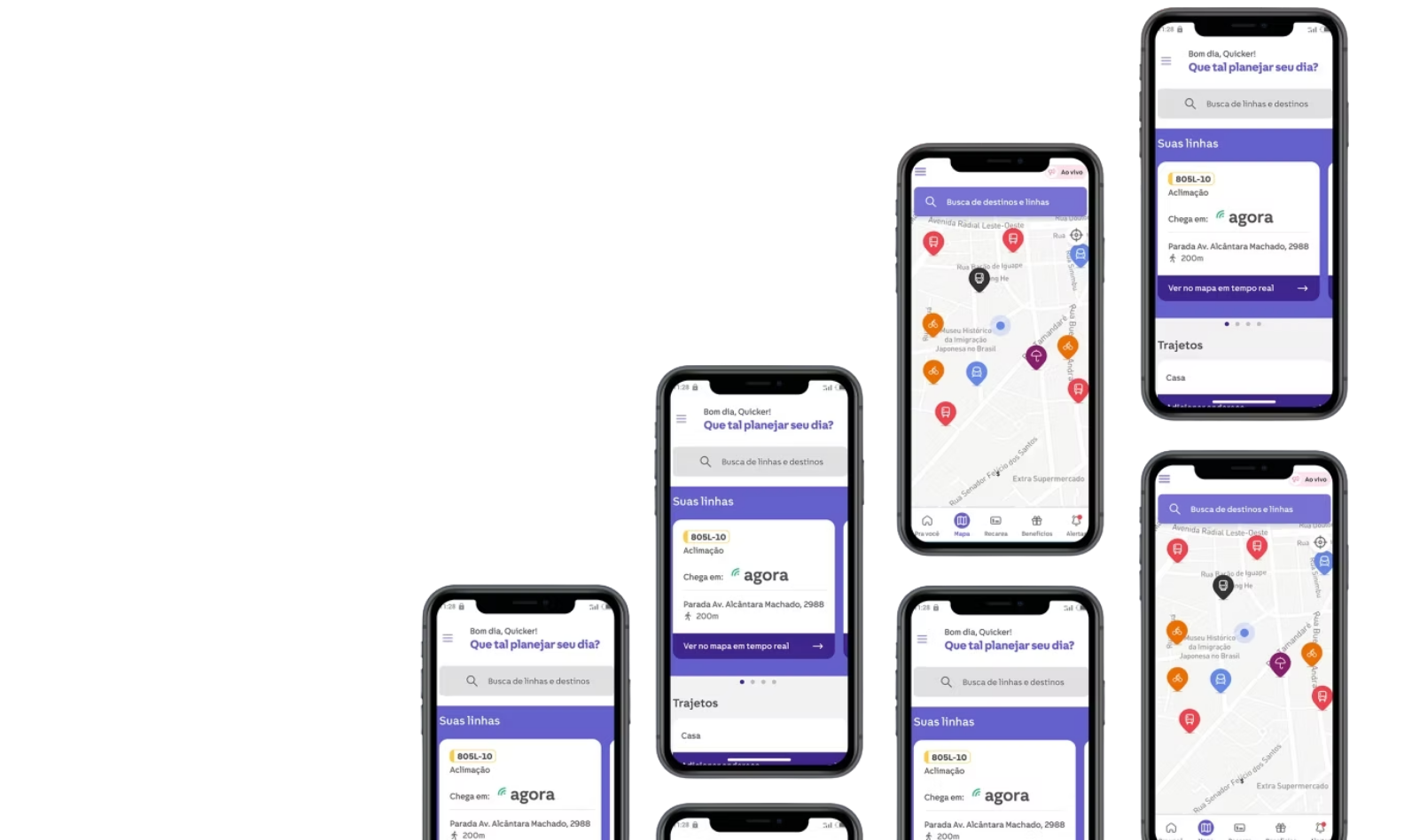 With more than 30% of Brazilians spending between 1 and 2 hours daily on public transit, Quicko is the essential solution for urban dwellers on the go. Users enter their destination and receive the fastest, most economical route options — combining multiple modes of transport including buses, metro, bike-sharing, and ride-hailing apps.